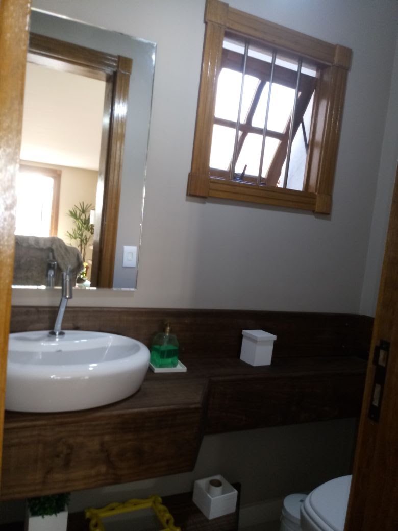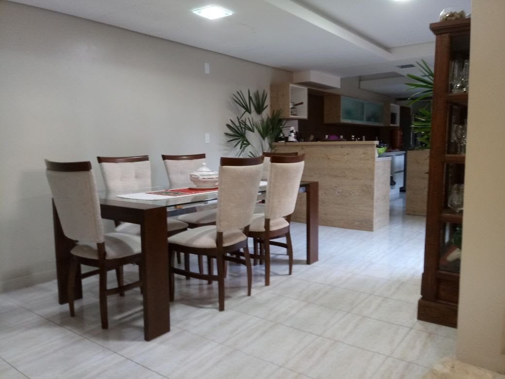 Sala de jantar e cozinha planejada gourmet e banheiro social;