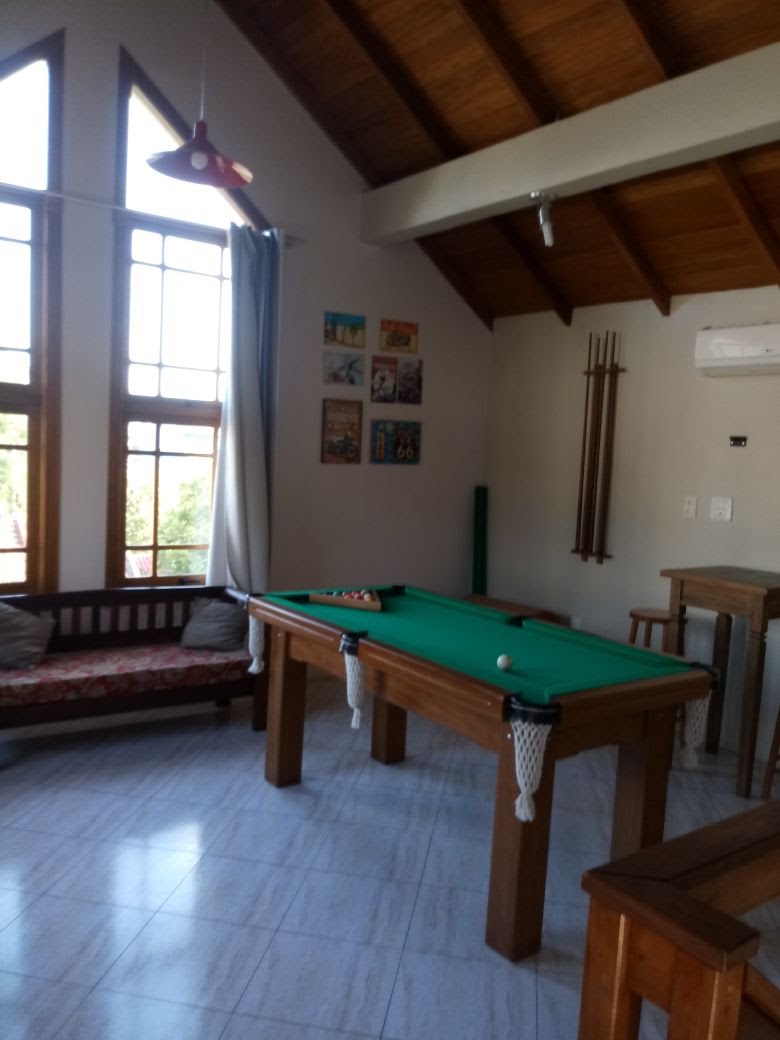 Ficam os móveis planejados e mesa de sinuca.