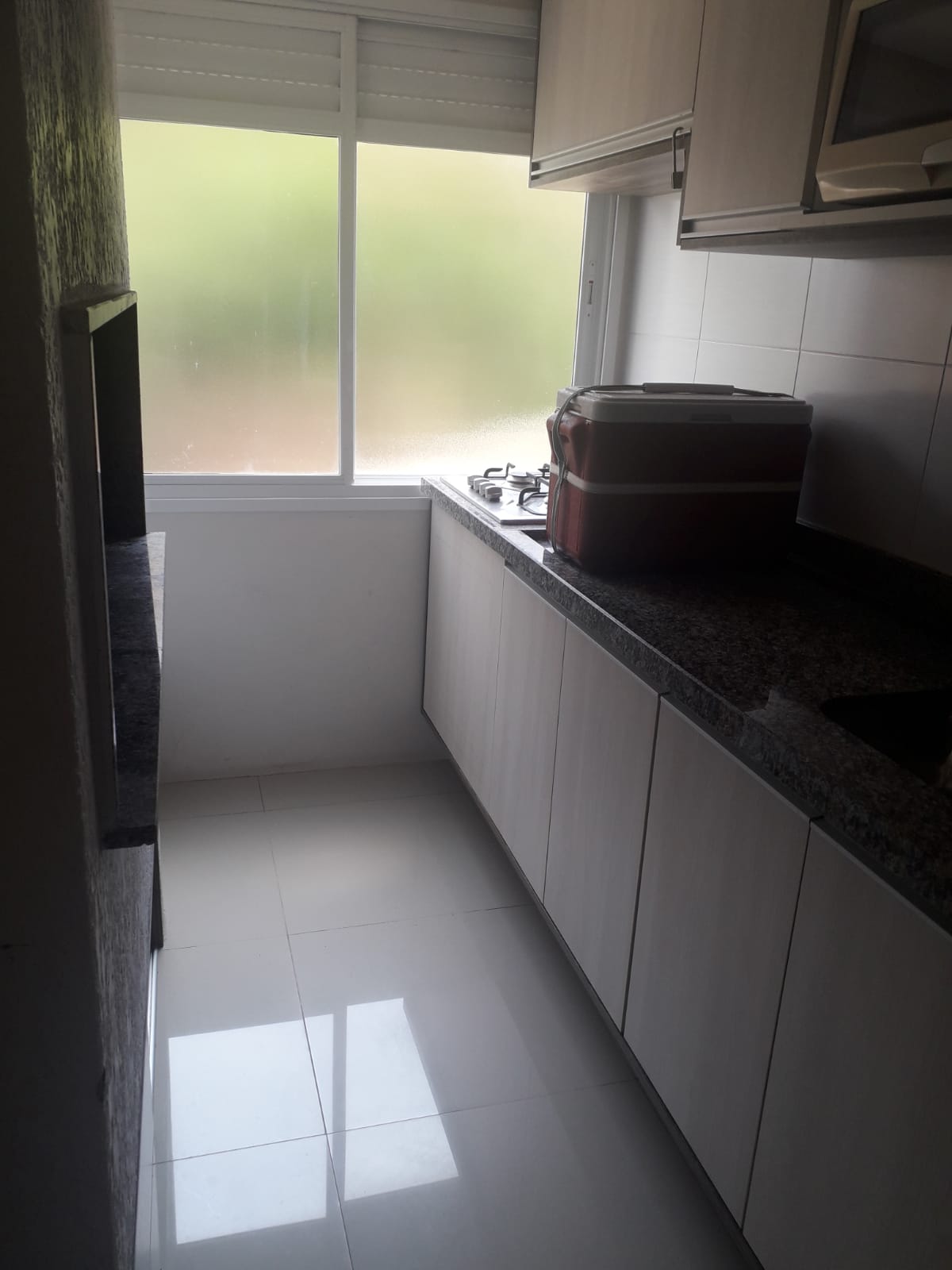 Apartamento 01 Dormitório, sala, cozinha, banheiro e área de serviço.
